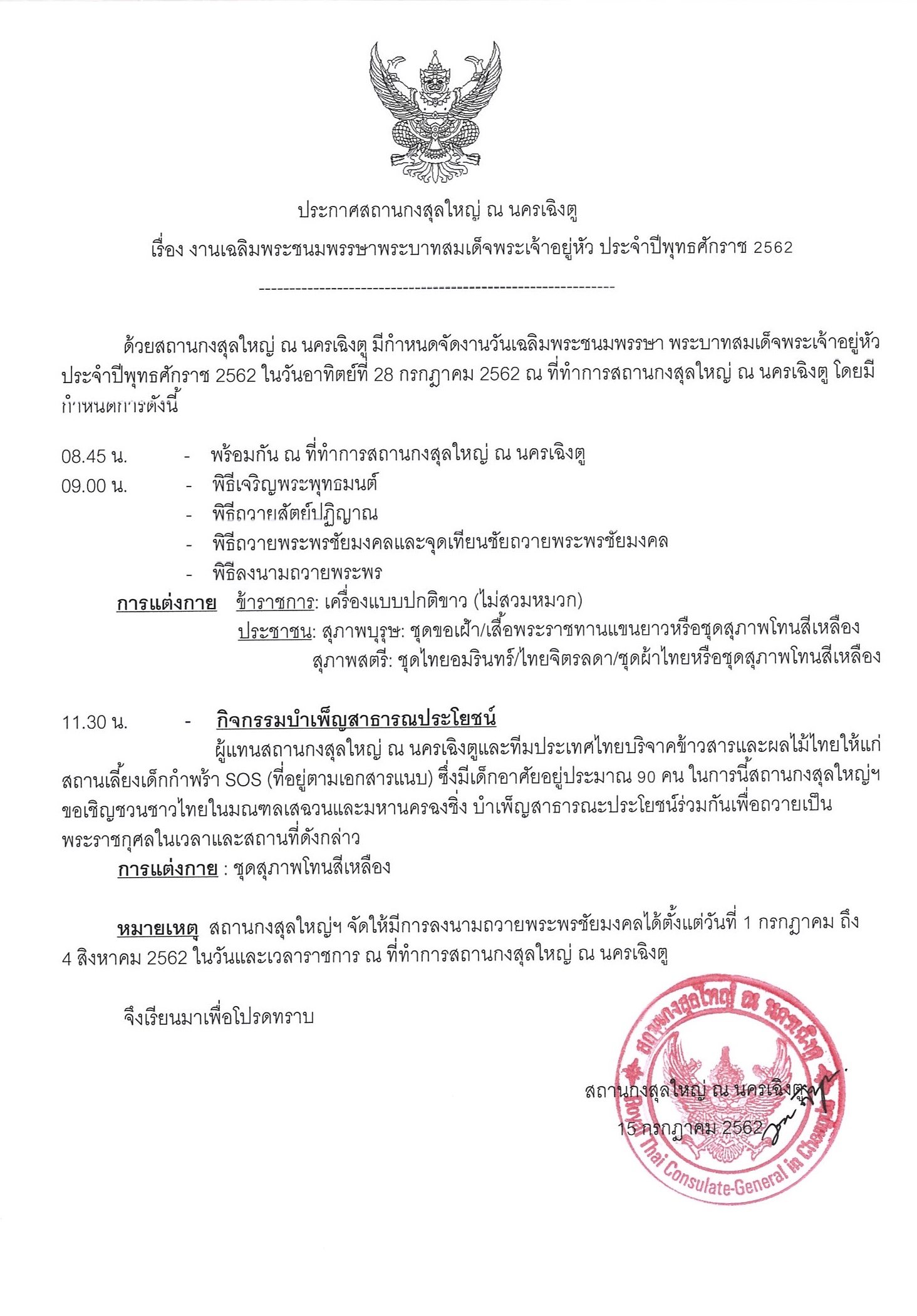 งานเฉลิมพระชนมพรรษาพระบาทสมเด็จพระเจ้าอยู่หัว ประจำปีพุทธศักราช 2562